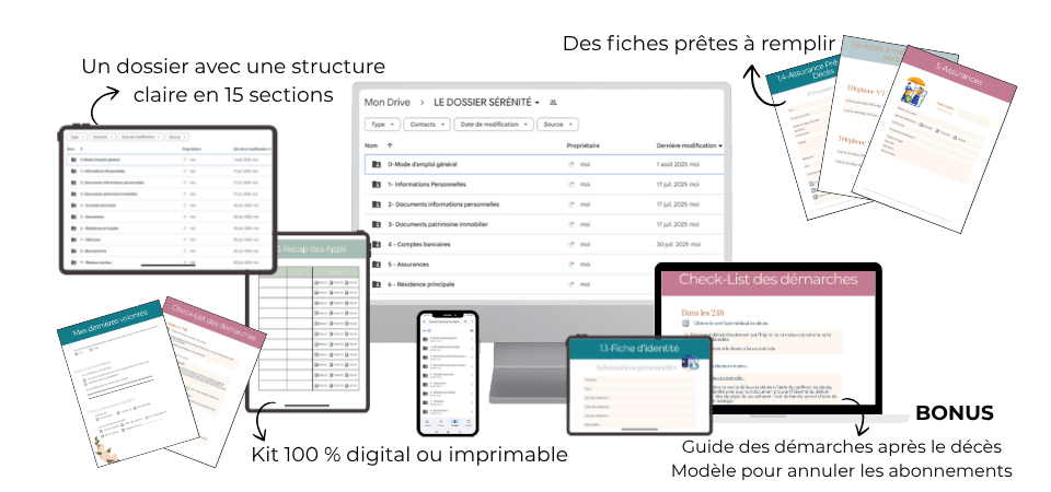 C’est un vrai plan d’urgence que vous créez avec amour : clair, pratique, et surtout, accessible pour votre famille quand vous ne pourrez plus leur expliquer.